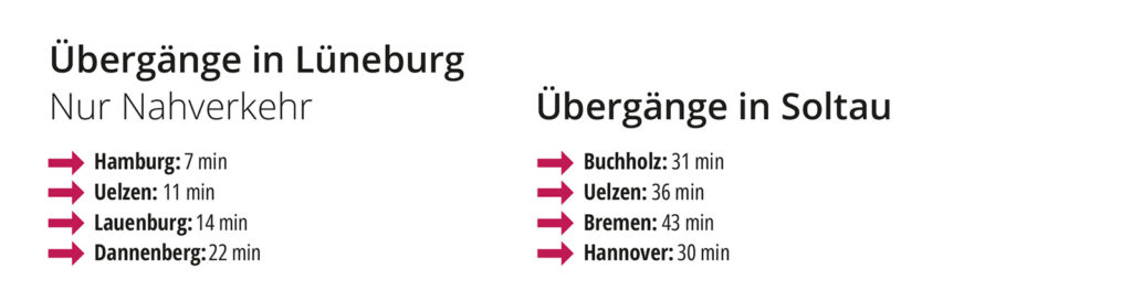 Hamburg 7 min, Uelzen 11 min, Lauenburg 14 min, Dannenberg 22 min